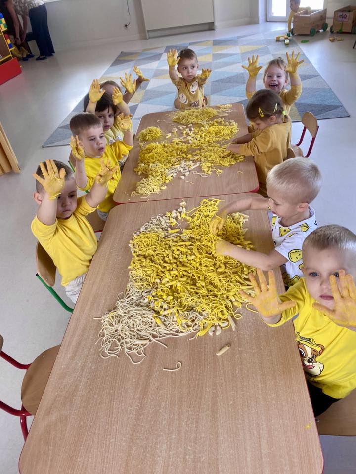 Fotorelacja z realizacji koloru żółtego w ramach Projektu „Sensoryczna Tęcza”. 🟡🍝🌈 Grupa 3 latków przez Tęczowe Przedszkole · 28 października 2025